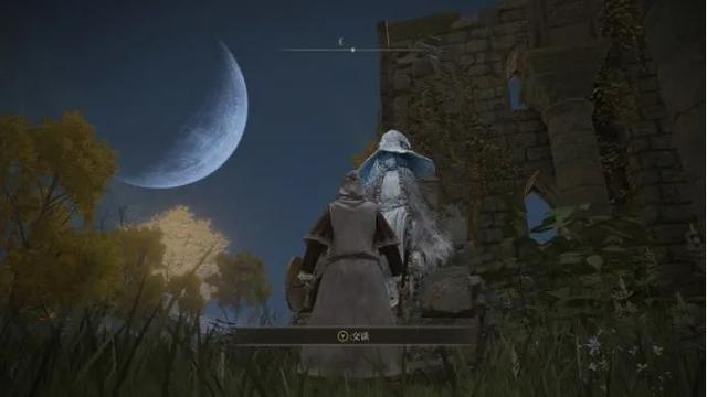 給老婆帶上戒指後,老婆就會出來跟我們對話,並把傳說武器——暗月大劍交給我們。至此,菈妮的任務線就算做完了。