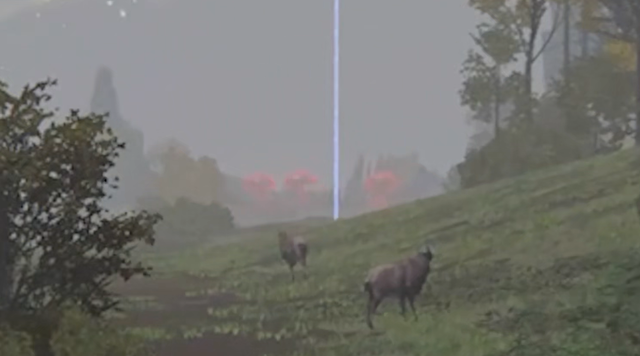 3、傳送到鍾四樓山腳後,往左看可以看到遠處有四隻紅色水母