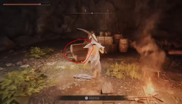 5、往裡走會看到一個火堆,旁邊有個寶箱,打開寶箱會獲得兩件衣服,拿了衣服後會有人從後面跳下來打你,你只需要將它打到一半血它就會投降,然後不要打它了,然後出去外面坐火,坐一會下來就可以找它買【黃金鳥爪】的製作書