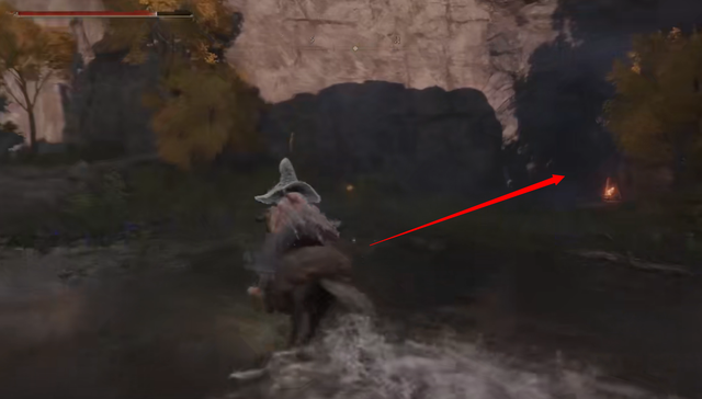 3、一直沿著河流往前走,前面右側有個【蒙流洞窟】,如果第一次來沒有看見洞窟,可以用武器打一下牆壁