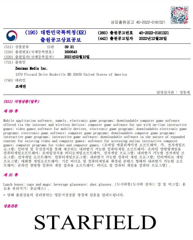 據外媒Naver報道稱,《星空》已在韓國提交商標申請公告,提交人是Zenimax,也就是B社的母公司。此前B社宣布過《星空》將於2023年發售,登陸Xbox Series X|S和PC,現在的商標申請可能意味著該作即將進入正式的宣發階段,具體發售日期可能即將公布。
