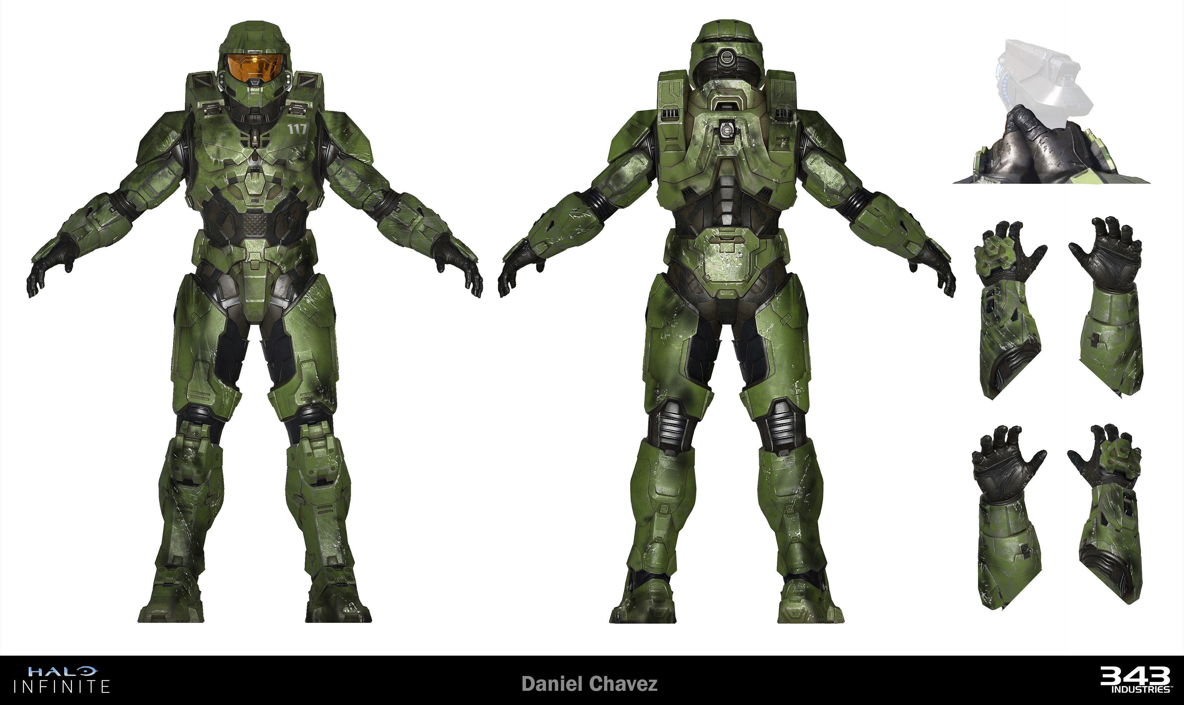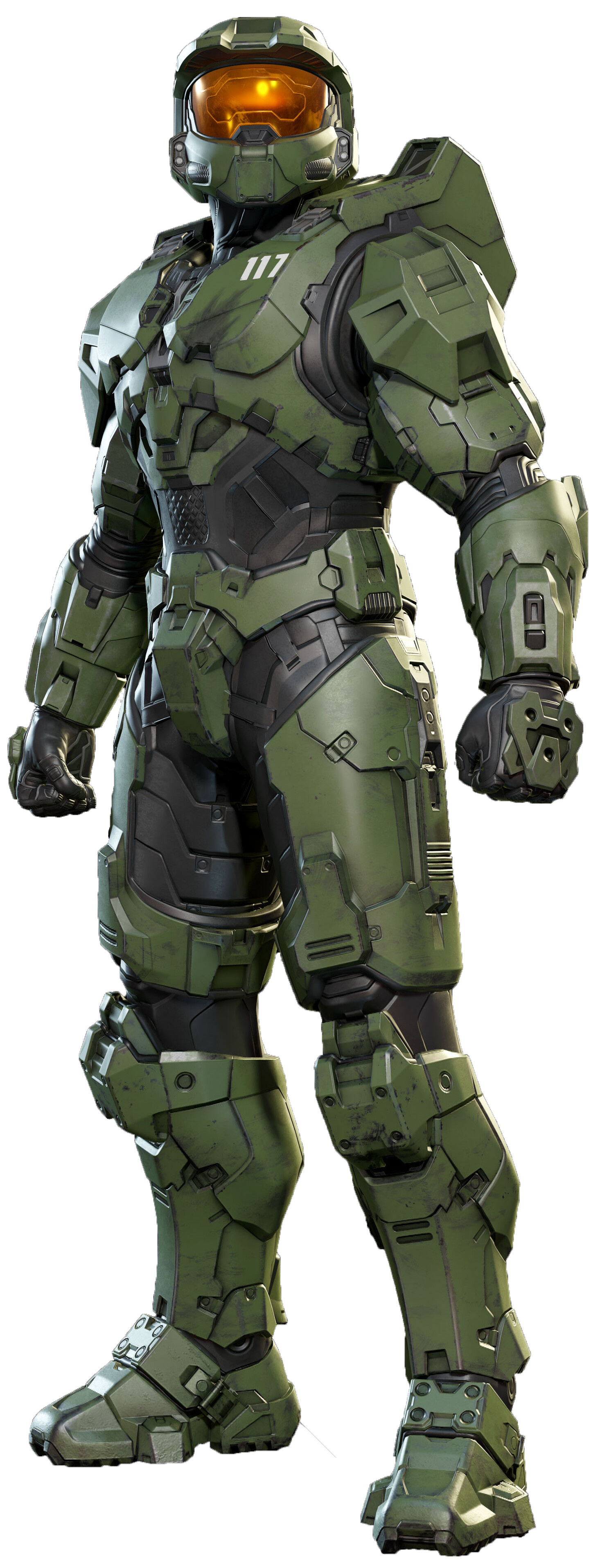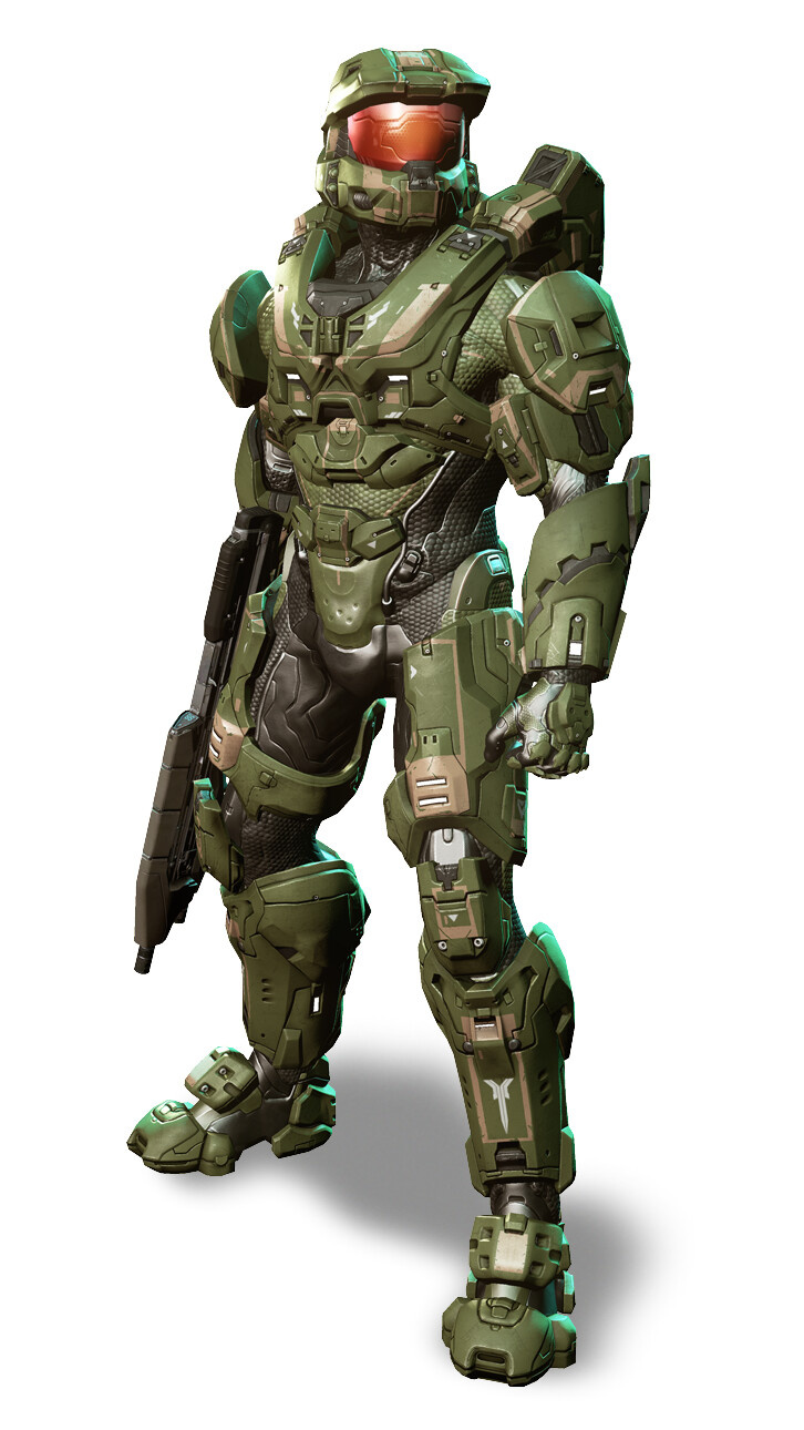 士官長在光環5中穿戴的護甲和光環4大致相同,只是有一些細微的外觀更新。面甲從暗淡的橙色變為充滿活力的金色。先前胸甲上的傷痕現在沒有。手臂和上身的內襯具有蛇皮質地。