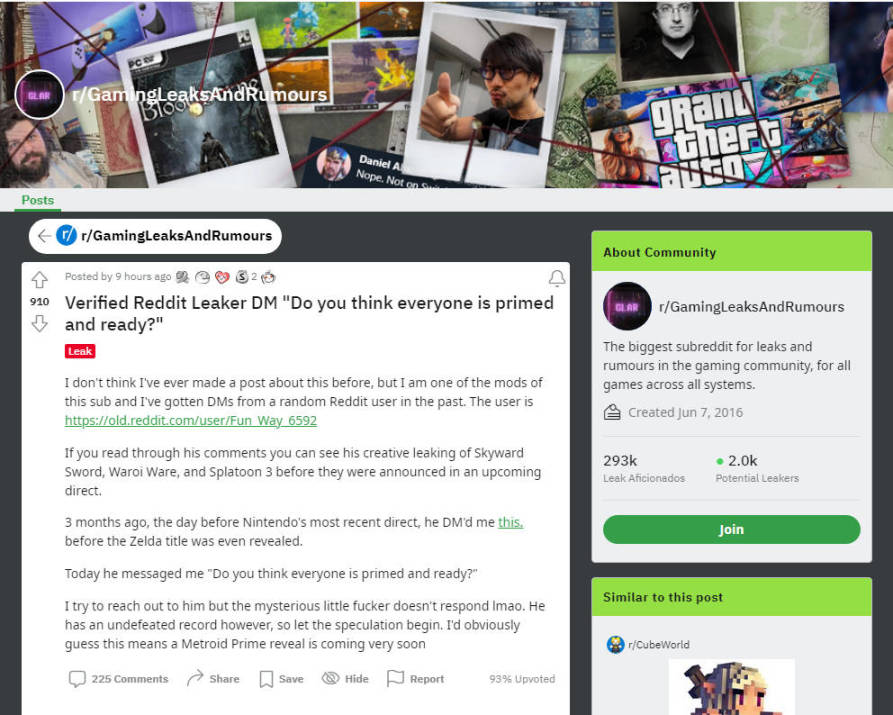 「舅舅黨」Fun_Way_6592此前曾準確爆料了《塞爾達傳說:王國之淚》的完整標題和揭曉日期。現在,他再次向在Reddit的板塊「GamingLeaksAndRumours」上爆料。這次他發布的內容是「你認為每個人都准備好了嗎?」 並在本次發布的內容中暗示即將發布與「Prime」相關的公告