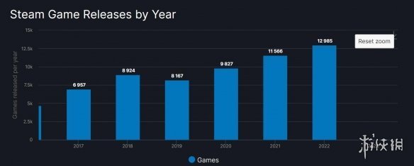 根據第三方數據平台Steamdb統計,Steam在2021年總共發布了11566款新遊戲,2022年這一數字提高為12985。