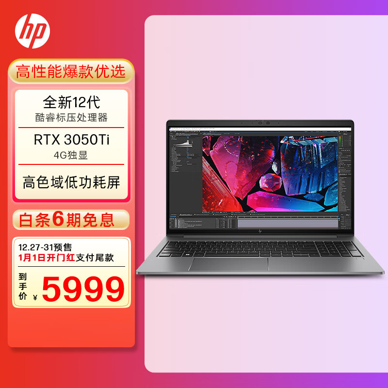 惠普在今年 6 月份推出了戰 99 設計師本,搭載 12 代酷睿 i5-12500H 處理器,顯卡為 RTX 3050 Ti 遊戲顯卡,首發 6999 元,1 月 1 日 0 點秒殺價 5999 元。