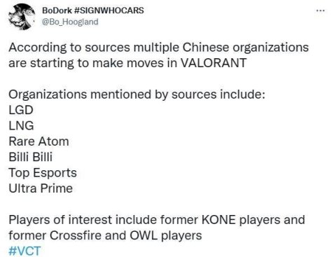 國外爆料人Bo_Hoogland透漏,國內多個國內俱樂部正在為即將到來的《無畏契約》組織戰隊