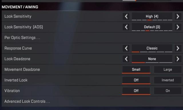 對於大多數玩家來說,視線和移動死區最多應該是小的。對於那些想要在他們的目標上做一點額外微調的人來說,完全關閉看死區。只要記住,如果你這么做,你的右手模擬搖桿會對最輕微的觸摸做出反應。