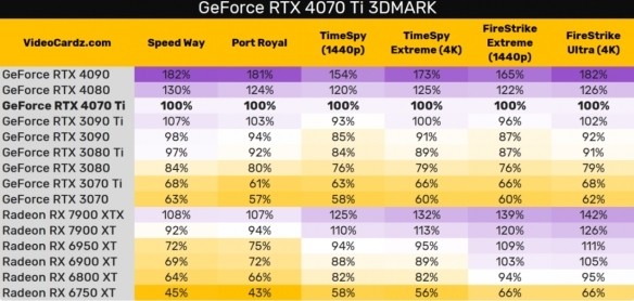 距離發布只剩三天,外媒VC搶先曝光了RTX 4070 Ti的3DMark跑分成績。綜合來看,RTX 4070 Ti比RTX 4080慢了20%-30%,略強於RTX3090,和3090ti不相上下,相比上一代RTX 3070 Ti快32%-39%