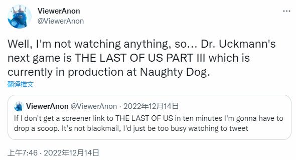 尼爾表示2023年頑皮狗將會有很多很酷的內容迫不及待與玩家們分享。同時神秘地表示讓玩家們警惕最近的「內幕」消息,因為其中絕大部分都是錯誤的。