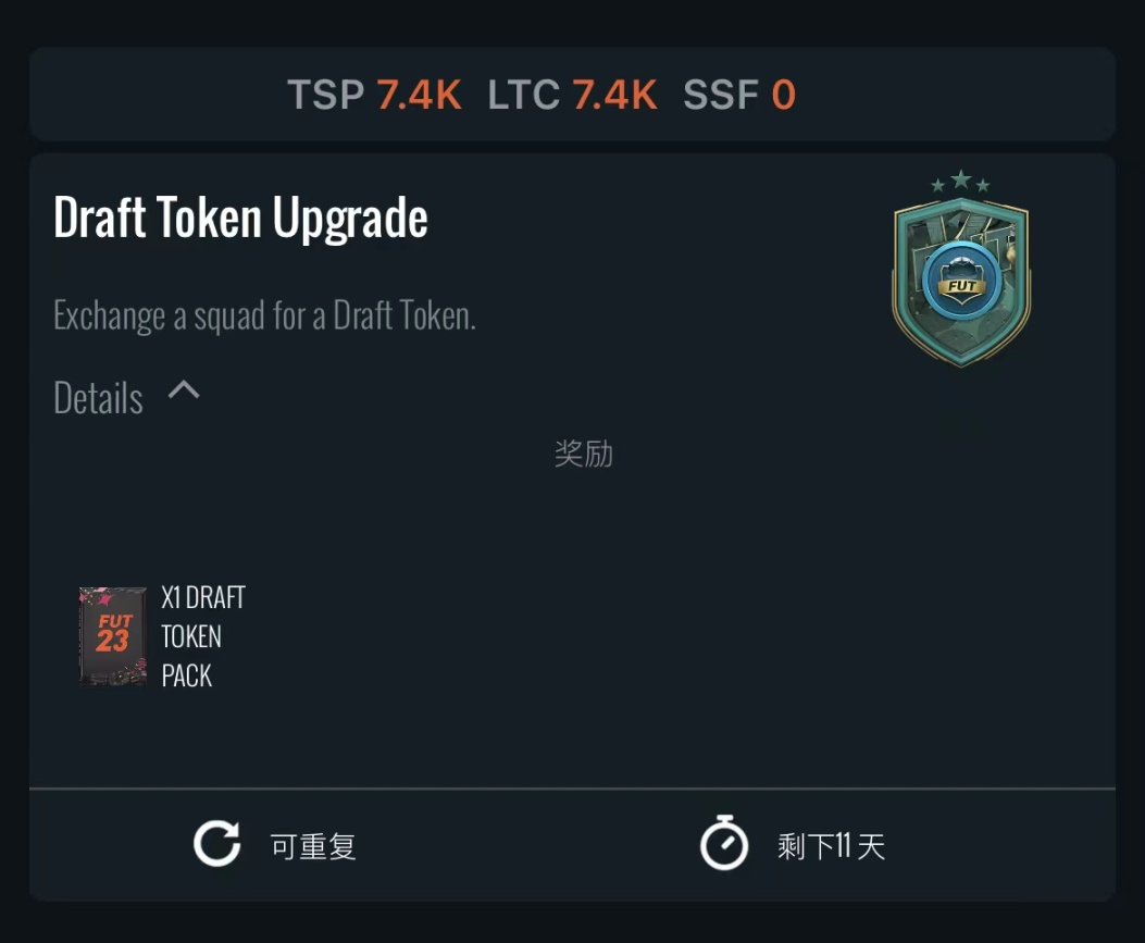 完成一場任意FUT模式比賽---1枚Draft代幣