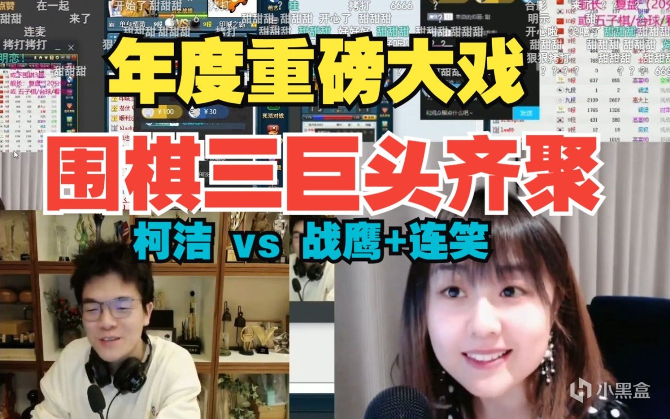 跨年夜,三人上演絕世好活,戰鷹先給水友1V7下指導棋,然後是柯潔給戰鷹上艦下指導棋。第一局,柯潔贏下戰鷹;第二局,柯潔讓戰鷹兩子,同時連麥打到連笑,連笑作為整場比賽的OB位置,幫助戰鷹一起對陣柯潔。