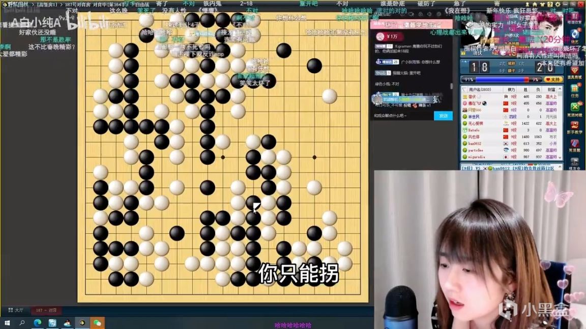 當中國棋手在跨年時,韓國棋手也在過元旦節。跨年晚上,申真諝進野狐房間看柯潔下棋,本以為柯潔元旦晚上這麼勤奮和哪位高手練棋,看了兩分鍾,結果直接給小申看懵了退出房間,實際上柯潔對面除了戰鷹外還有連笑。