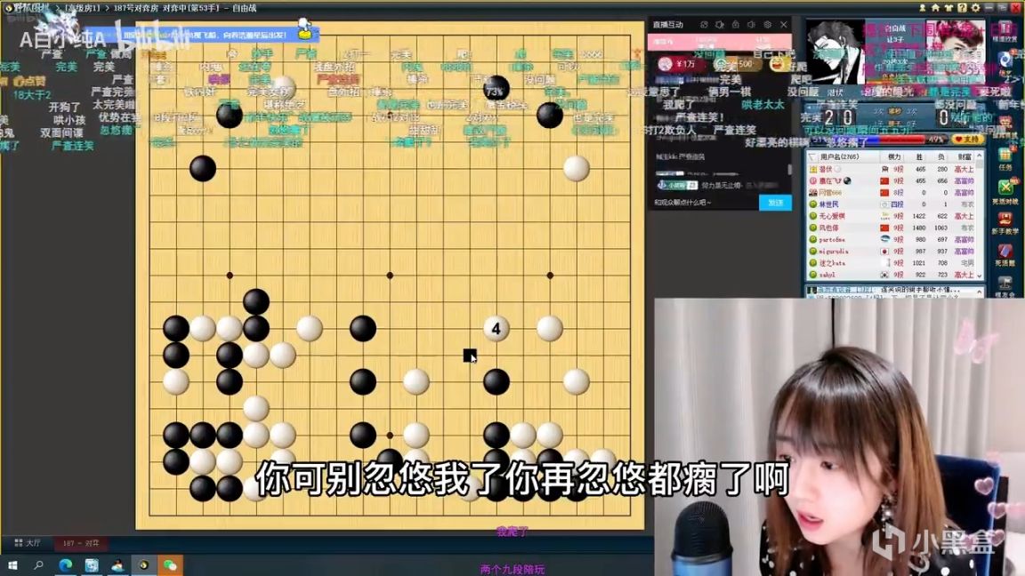 第三局是節目效果拉滿的一局,柯潔執白,戰鷹執黑,柯潔讓戰鷹三顆黑子,然後戰鷹還有連笑幫她,前面布局階段,戰鷹優勢很大穩扎穩打;柯潔讀彈幕「嚴查連笑」,柯潔說連笑肯定幫戰鷹,但連笑虛晃一槍說不一定。