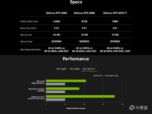 性能方面,英偉達將RTX 4070 Ti和RTX 3080 12G進行了對比,在2K畫質設定下,開啟幀生成的RTX 4070 Ti性能大幅領先 後者。