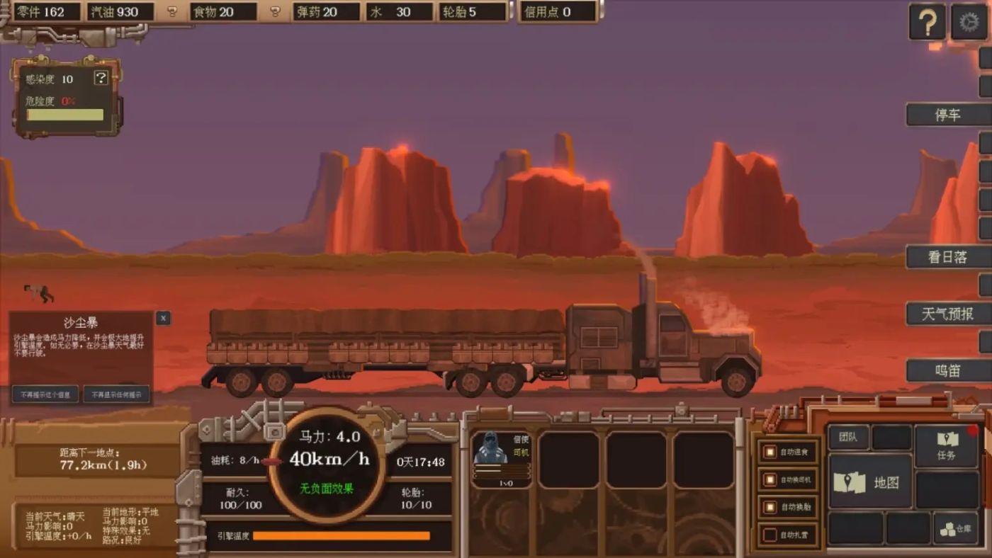 《廢土快遞》,是一款策略生存遊戲。玩家扮演一位商隊的隊長,需要駕駛自己的卡車,在各個城鎮和定居點之間來回奔波。在趨利避害的同時,屏幕前的你,也要嘗試發掘這片土地上暗藏的秘密。