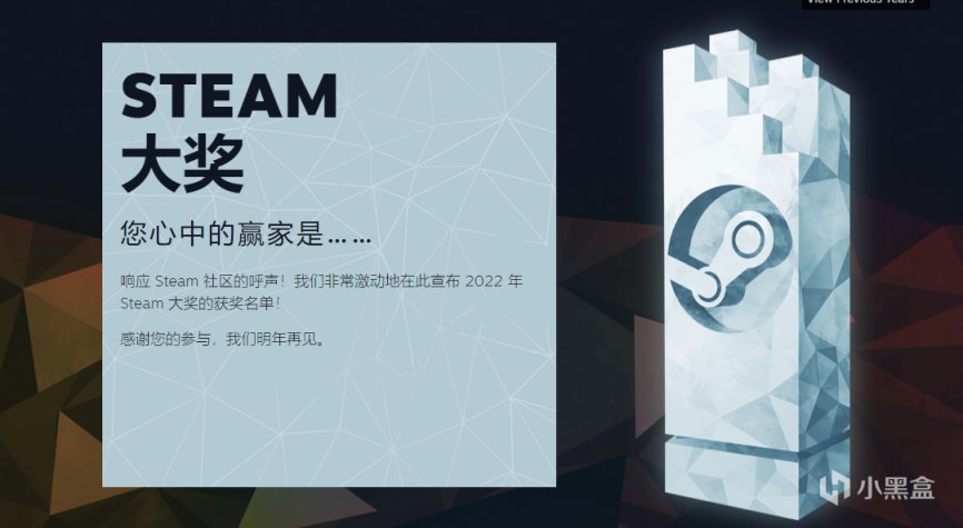 想查看完整名單的打開STEAM,開屏第一個窗口即可看到。你對2022STEAM大獎的評選結果滿意嗎?再次恭喜以上所有獲獎遊戲,製作方將會獲得STEAM送出的一座紀念獎杯。