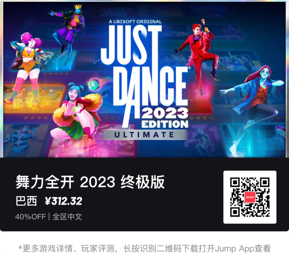 歡迎乘著《Just Dance 舞力全開 2023》來到舞蹈新時代!這可是頭一次,各位能在〈Dynamite〉展現 BTS 精神,並透過其他排行榜金曲盡情搖擺!藉由全新線上多人游戲、個人化功能、3D 沉浸的游戲世界、全年加入的新歌曲與模式,現在你可以體驗持續一整年的舞蹈派對!
