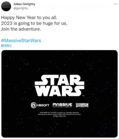 Massive的《星球大戰》 遊戲於2021年1月開始開發,有望在2023年公布更多信息,本作創意總監 Julian Gerighty 最近的一條推文似乎暗示了這一點。Gerighty 最近在 Twitter 上寫道:「2023 年對我們來說意義重大。加入冒險吧。」 這條推文附有一張《星球大戰》標題的圖片。