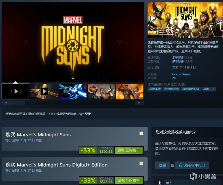 在Steam發售一個月後,《漫威暗夜之子》進行降價促銷,原價199元,現價133.3元,降價33%!