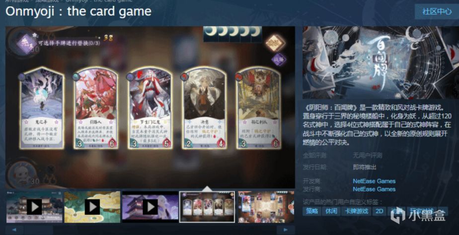 網易突然在STEAM上架了陰陽師IP的卡牌游戲:《陰陽師:百聞牌》。目前該游戲STEAM商店頁面正在完善中,但是游戲目前鎖國區,預測會是三端互通的游戲。具體何時正式推出,時間未知。