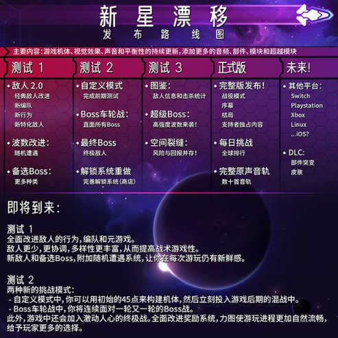 《新星漂移》是一款一款持續開發中的遊戲,我們會頻繁更新以擴展遊戲深度和內容。