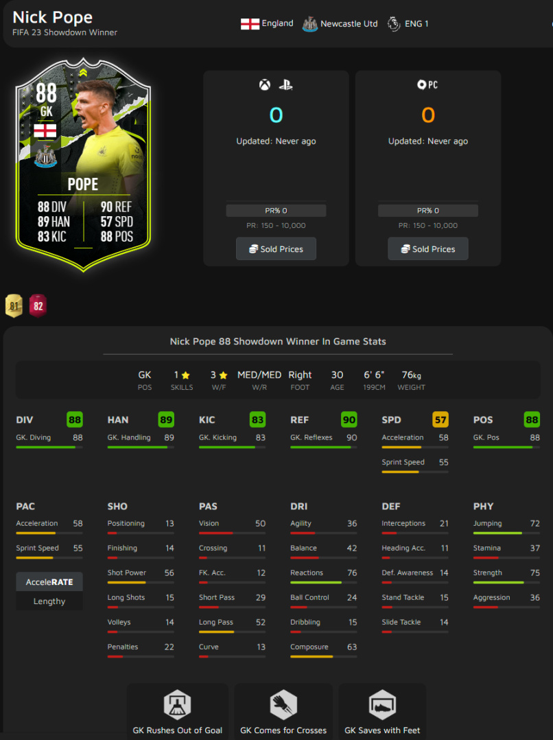 在過了8天,紐卡斯爾打了三場比賽之後,EA終於想起了這張還沒漲分的波普。漲完分之後這張波普還是挺香的,不過門將還是更看玄學,化學配得上且自己用的慣就行。
