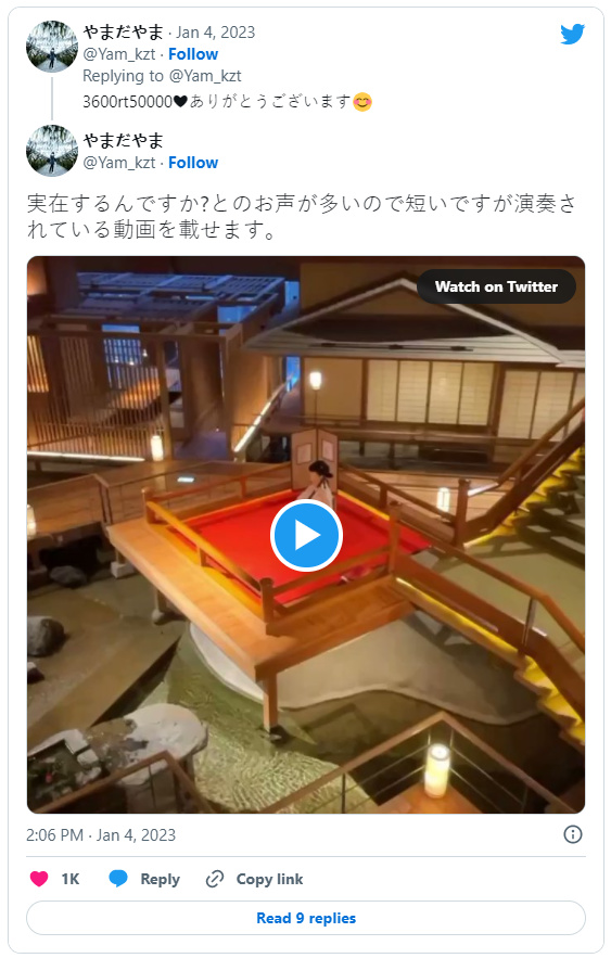 雖說也有人好奇這是不是 CG 合成製作出來,不過發文的推主表示自己是實際到這家旅館,也上傳了演奏樂器的影片,搭配這個充滿意境的背景,真的讓人想朝聖看看這到底是何處。