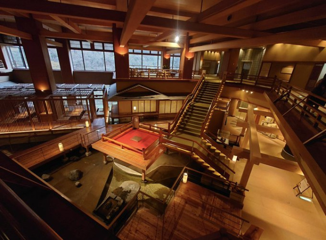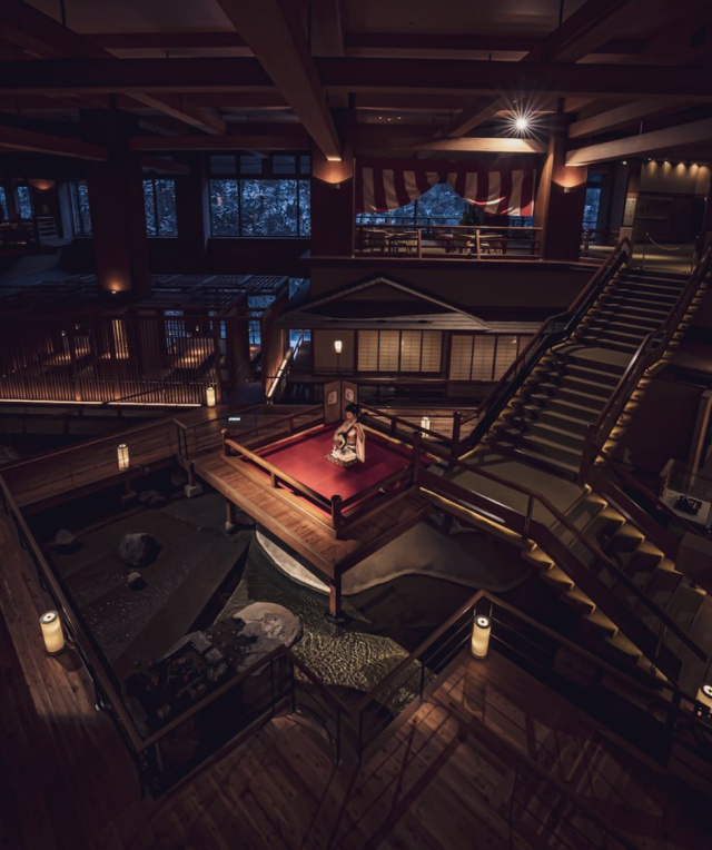 事實上這是一間福島縣會津的蘆之牧溫泉一帶、已默默成為話題的「大川庄」 溫泉會館。其實當初約 2020 年動畫熱潮時,就因為神似無限城的場館設計頗受粉絲關注,只是因為近年疫情的關系也減少了遊客,近來日本逐漸開放的緣故,也再次讓越來越多人前來探訪這間話題旅館。
