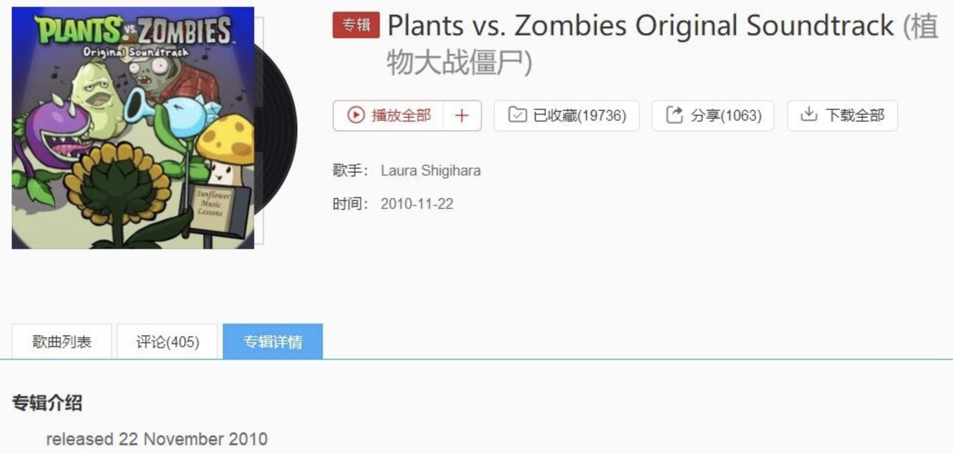 值得一提的是,這些音樂全部出自Laura Shigihara一人之手。這位有著1/2日本血統的美國音樂人,還演唱了獨立游戲神作《To the moon》的插曲《Everything's alright》,而另一款在Steam備受好評的獨立游戲《Rakuen》的所有BGM同樣是她一手包辦(準確地說,Laura Shigihara是《Rakuen》這款游戲的製作人,包括游戲BGM在內的整個游戲都是她的作品。在《Rakuen》的Steam頁面上,開發商和發行商寫的都是Laura Shigihara)。有這樣一位游戲配樂界的常青樹操刀製作,難怪《植物大戰殭屍》的BGM質量如此之高了。在《植物大戰殭屍》中,不僅不同的環境場景有著不同的BGM,在瘋狂戴夫給玩家賣貨(這傢伙到底是熱心鄰居還是來趁亂髮財的啊?我懷疑他才是殭屍來襲的幕後黑手,目的是趁機賺錢!手動狗頭)、玩家在禪境花園逗留等不同的情境也都有符合氛圍的BGM,對於一個僅僅幾十M的小游戲來說,體現了當年的寶開對游戲品質打磨的用心。
