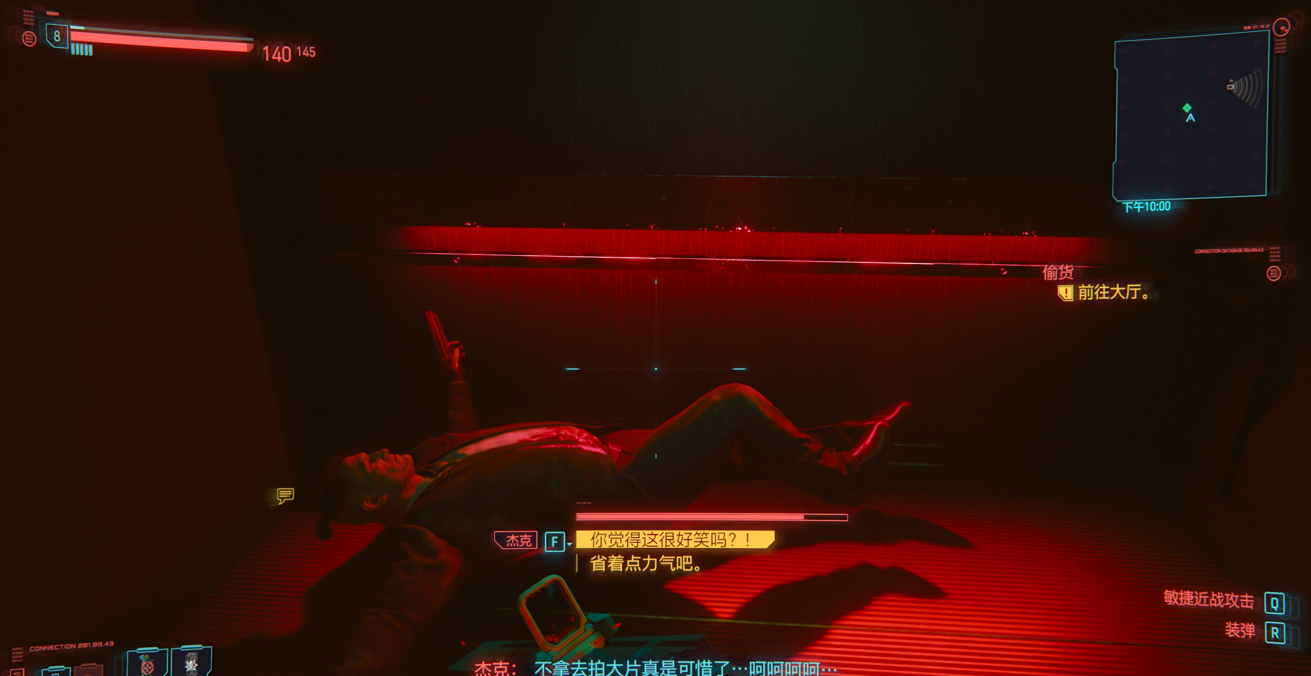 2、步槍開鏡無法射擊。這個問題我只遇到過兩次,其實不算多,並且有一次我直接GG讀檔了,還沒來得及求證問題所在。但是因為這一問題及其影響體驗所以還是要提,遇到這個BUG的時候我正在荒坂工業園跟荒坂的士兵對槍,結果正當我走下高點准備狙擊槍換步槍的時候發現,我一開鏡步槍就卡殼,不開鏡就可以突突突,被迫換成武士刀開始肉搏。當戰斗結束後我嘗試了更換步槍,更換配件等等操作,問題仍然存在,只要一開鏡就無法射擊,但是狙擊槍和手槍全然沒有這個問題,最後通過存檔讀檔就解決了。