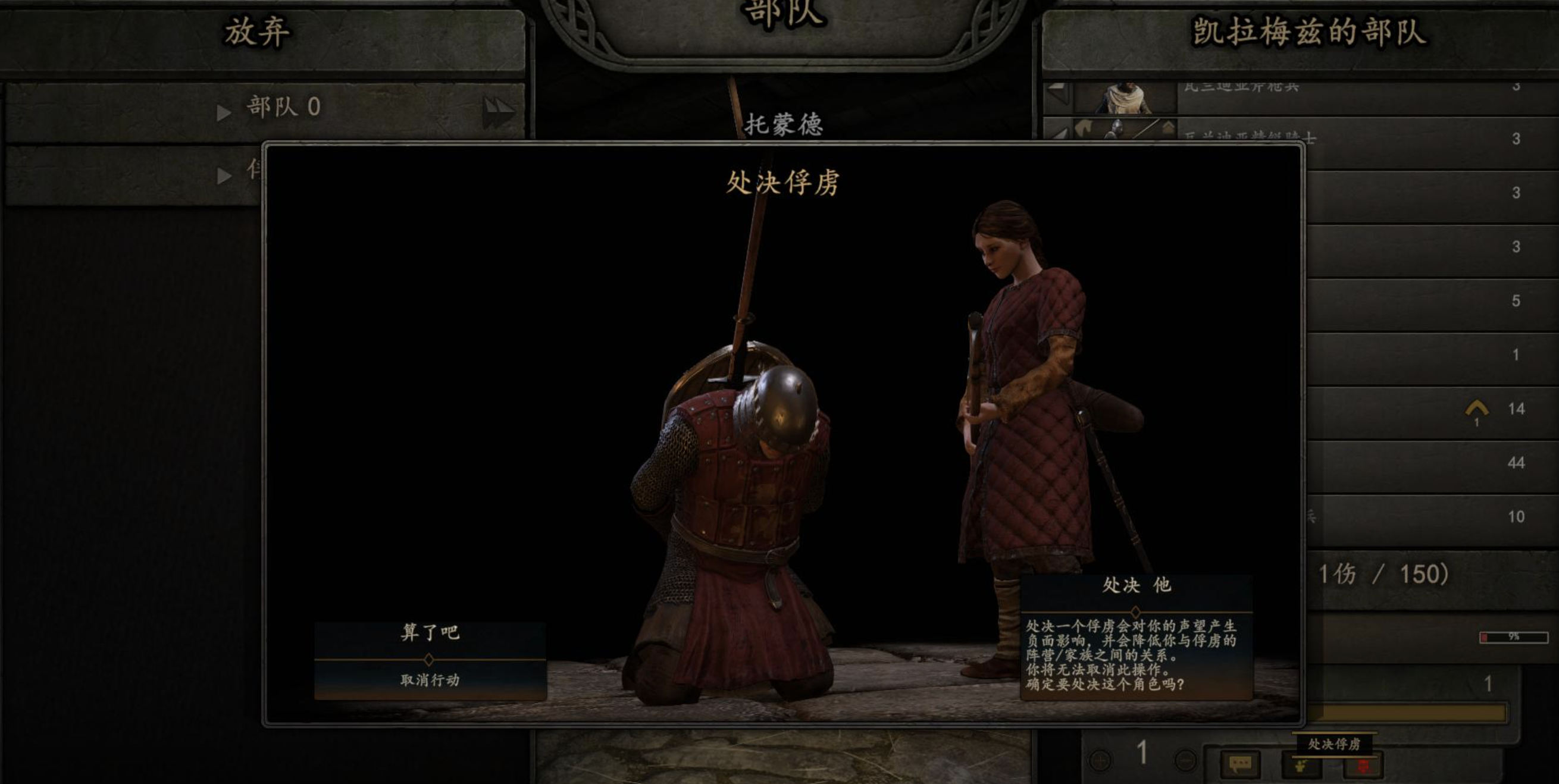 將他俘虜後,點擊部隊界面,處決俘虜。
