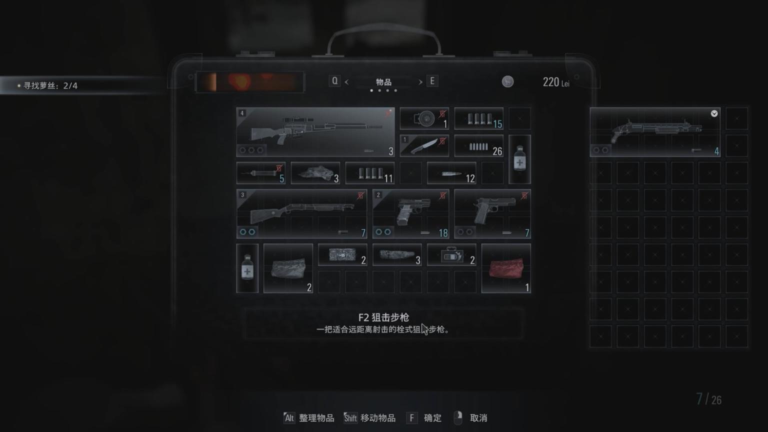 就背包管理來說,玩家大部分情況下都不用擔心背包格子的不足,因為資源的獲取與消耗基本上是維持在一個定值,而像藥草火藥等這些合成材料製作組也將其單獨放在了一個物品欄中。功能性道具以及交易物品則繼承於4代的設計,未將其納入背包中。這麼一看的話玩家的背包負擔基本上就只有子彈、武器和恢復藥劑。再加上遊戲中可以時停合成,子彈以及藥劑等消耗品的空間佔用也就進一步縮短。因此大部分情況下,玩家都無需資源管理,少部分情況會需要玩家整理一下背包,至於4代中物品取捨的情況,我基本上沒有遇到過。