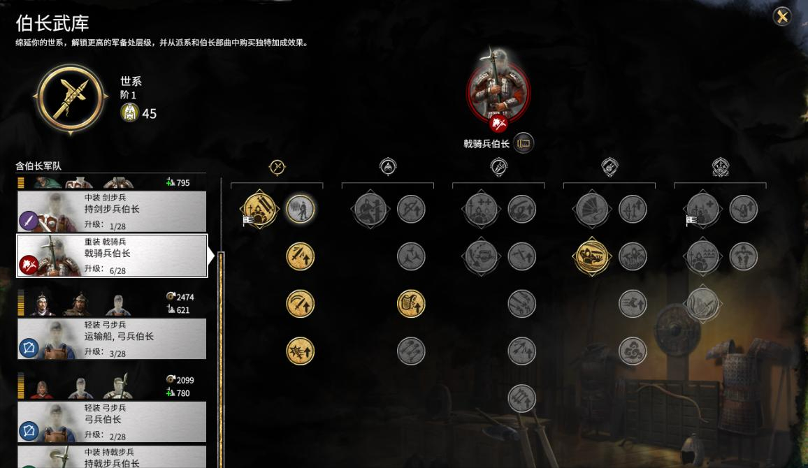 但要記住伯長武庫的強化對象是單一的,一個伯長部曲強化完成後一定要當心不讓其全滅,也不要輕易撤回將領,否則對其所有的升級將前功盡棄。
