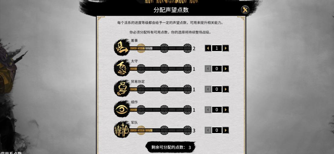 現在每次聲望達到閾值後都會獲得聲望點數,可以自由選擇派系各個方面進行強化,並且不再自動晉升派系等級。你可以一直在公的階級進行擴張而不稱王,有效地防止被附庸背刺。