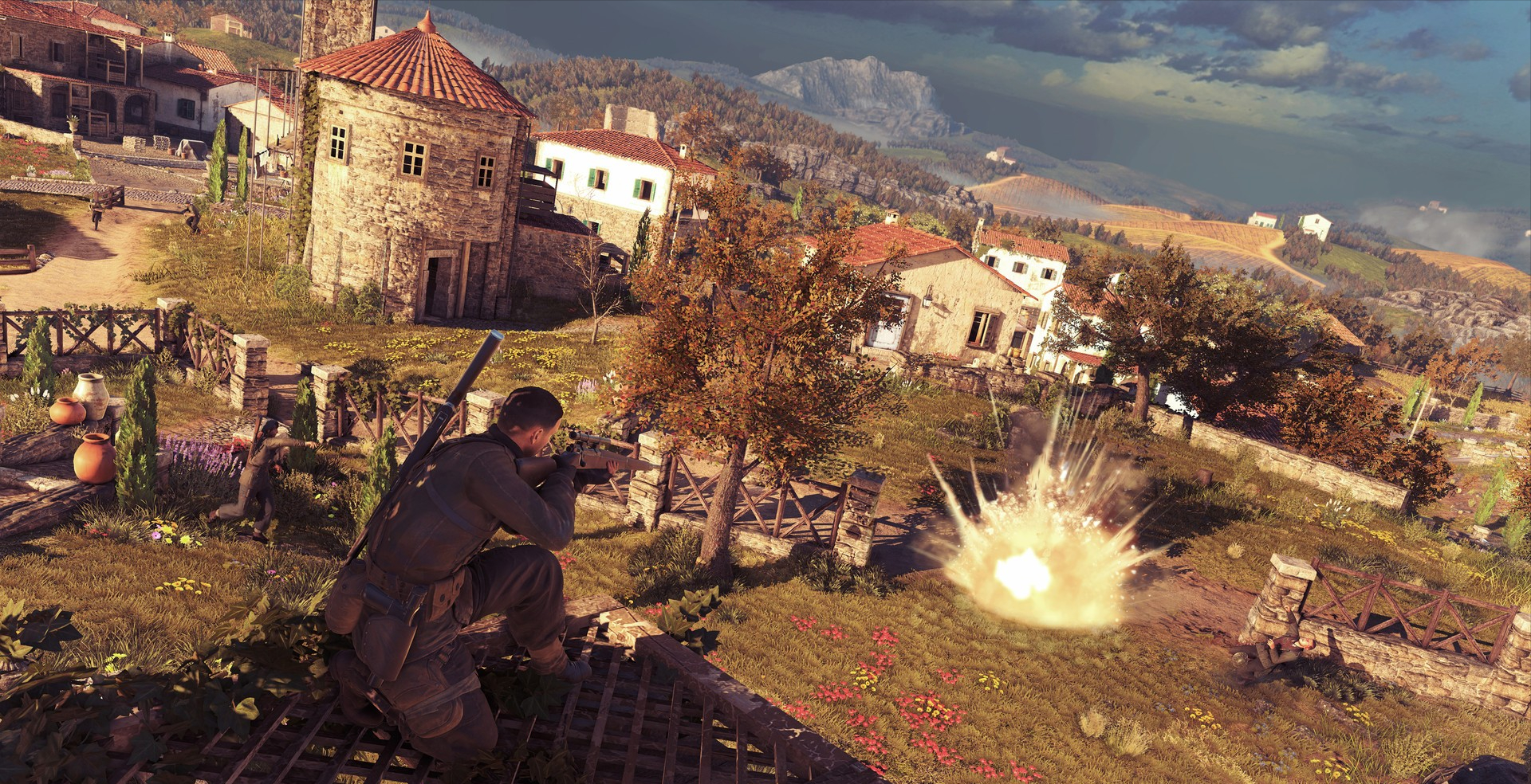 狙擊精英系列一直聚焦在二戰題材,從前兩作的歐洲戰場,到3代的炎熱北非,這次來到了風景如畫的南歐義大利,關卡地圖種類也達到了前所未有的豐富程度,山脈上的大教堂、夜間的海港基地、海邊的優雅小鎮、陰冷山洞中的秘密工廠,不同風格的場景讓玩家很容易沉浸在其中,有強烈的慾望探索地圖上每個角落,遊戲自然也沒有讓我們失望