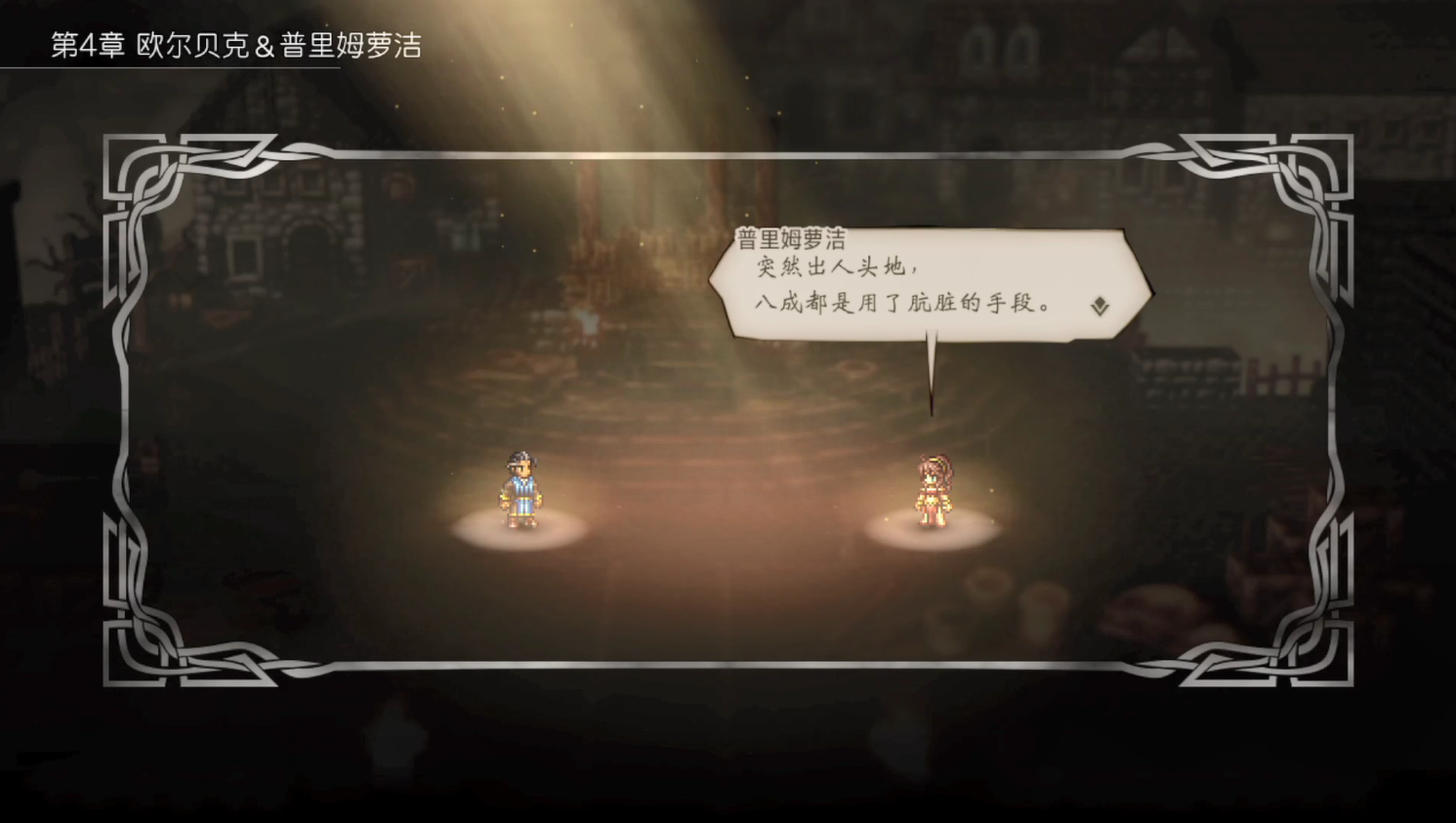 遊戲性方面還有一點不得不提,自從《勇者斗惡龍 6》中出現了隱藏BOSS的概念之後,「真結局」這一設定也不斷被各種RPG遊戲所使用。對於《八方旅人》而言,最終BOSS的設定不僅起到了劇情上的起承轉合,更是對遊戲性的一大補完。具體描述會涉及較多的劇透,這里便不再一一展開,只能說隱藏BOSS一定是遊戲中最大的驚喜之一。