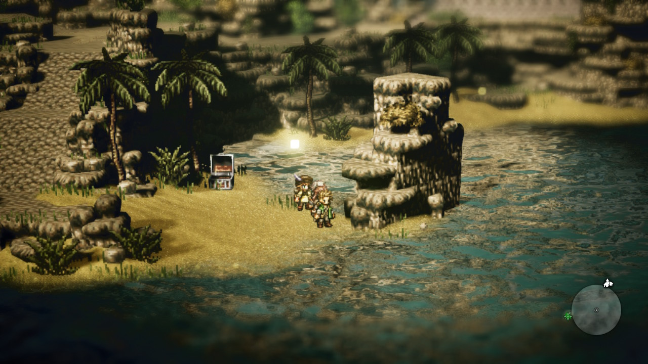 高清像素的概念在這兩年其實並不算多麼稀奇了,這其中著名催淚國產像素遊戲《去月球》也算功不可沒。而《八方旅人》的高清像素又與一般的高清像素不同,遊戲中人物的建模使用了2D建模,場景則是3D具有立體感的。高清像素的出現從一定程度上改變了人們對像素遊戲的看法,尤其是在畫面表現端,一款製作精良的高清像素遊戲的畫面表現與那些追求逼真建模的遊戲相比並不會差太多。至於《八方旅人》,它的出現無疑會再一次改變人們對像素遊戲的認知,一個用虛幻4引擎打造的像素遊戲可以做到很多原本難以做的事情,當人們第一次在遊戲中看到飄動的雲、流動的水、隨風而動的雪,那流暢的表現讓人無法想像這是一款像素遊戲。