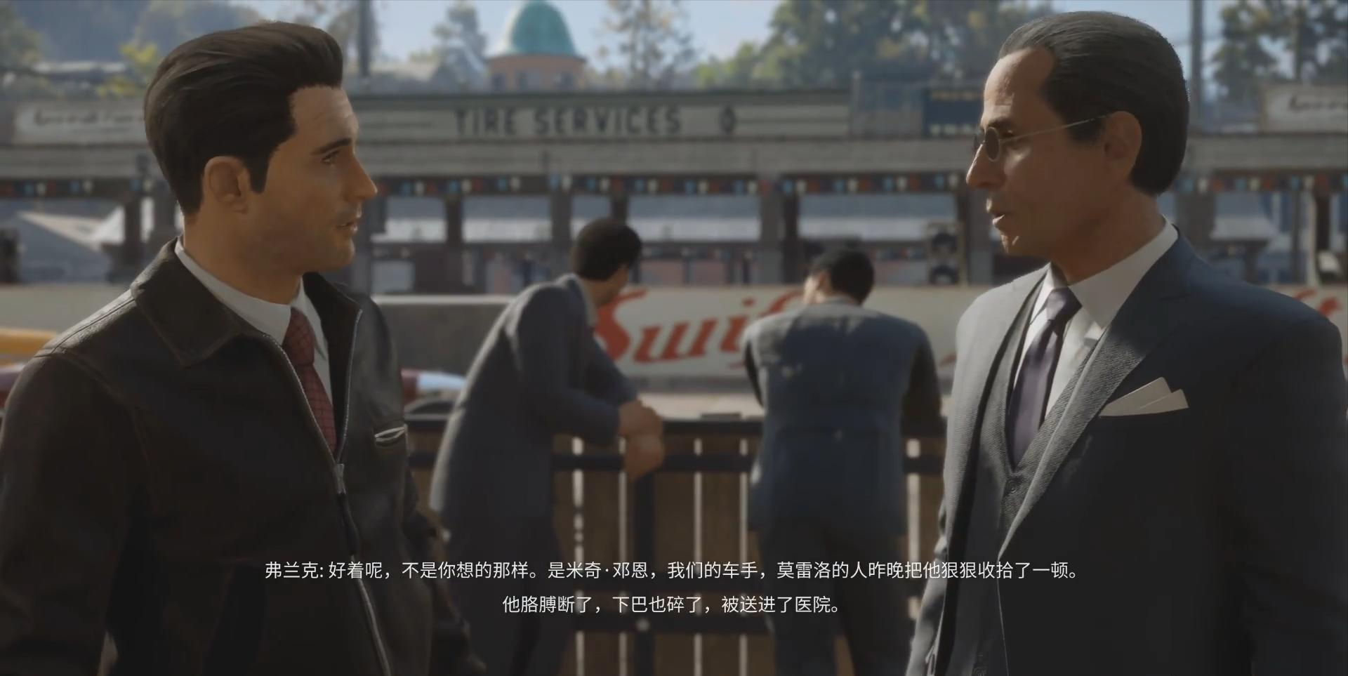 日常派對開始接觸文森佐(家族軍械師)和拉爾菲(家族汽修工),這二人的劇情有很明顯刪減的痕跡,游戲第四章里的CG給了文森佐和拉爾菲有濃重的人物形象刻畫,前者強硬且親切,後者懦弱且自負。以至於最後湯米當污點證人,二人被關進汽車時流露出的幽怨難以置信的眼神,這讓我懷疑是不是少做了和這二人相關的一大段的支線任務。翼騎的構想中至少得有些幫家族搶奪**和盜竊稀有車輛和配件。