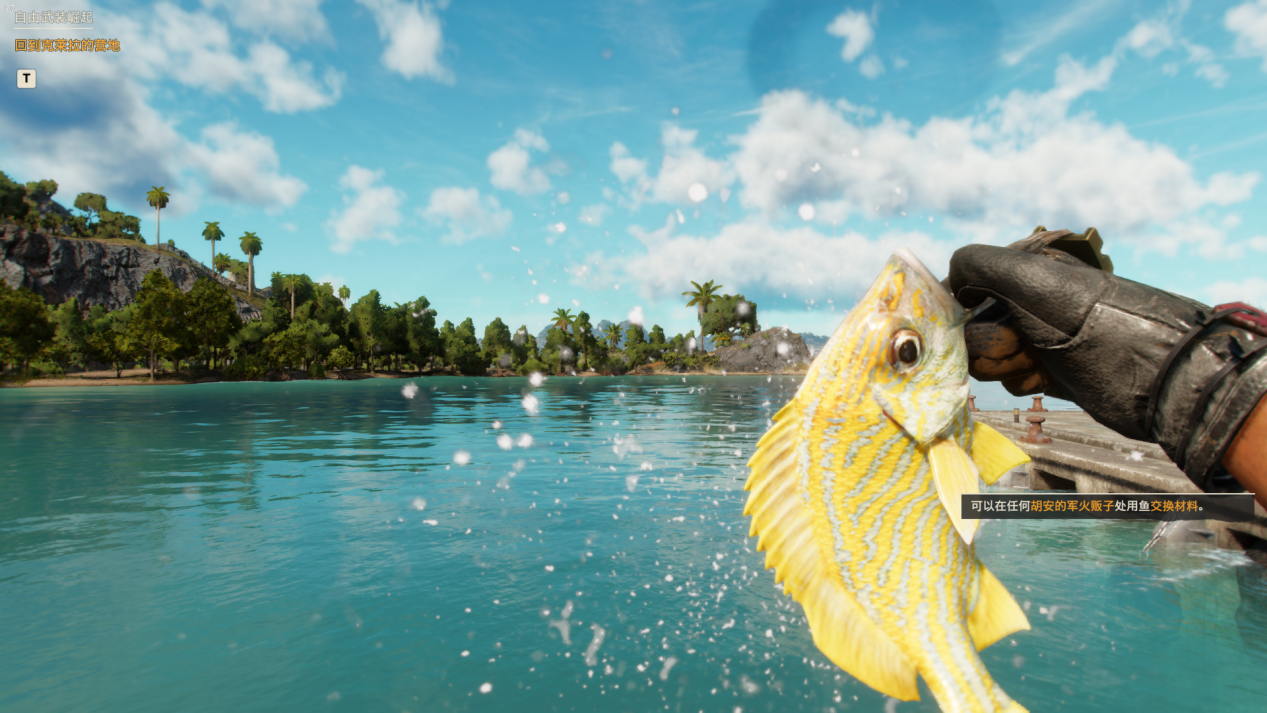 遊戲也有很多經典玩法被保留,依舊是超大的地圖和生機勃勃的海島,海島上有各種各樣生物,打獵釣魚都可以,十分養生。我在遊戲中第一次釣魚就掉到一條黃色的魚,針不戳!