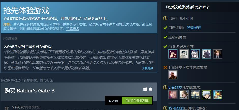 第一點,目前游戲BUG較多,處在EA階段可以理解,因此不推薦跟風的玩家現在入手,也不推薦打算嘗試CRPG的玩家現在入手,目前這款游戲只推薦極度喜歡CRPG或者博德之門系列游戲的玩家現在入手,可以提前體驗到游戲的內容對於這類玩家是值得的。