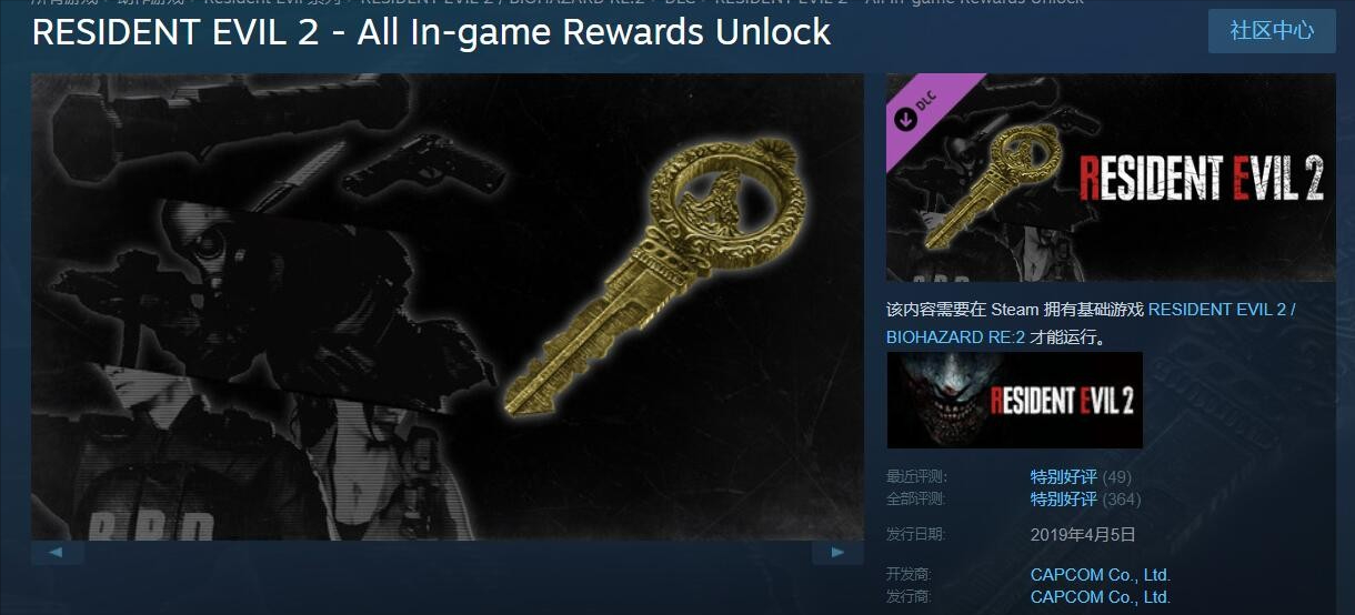 目前也沒有單獨的商店頁面,暫不知道之後會不會將本篇與抵抗計劃分開售賣。考慮到此前生化2重製永降,分開賣的可能性也不是沒有,不過那時候相信會迎來更多的吐槽吧。