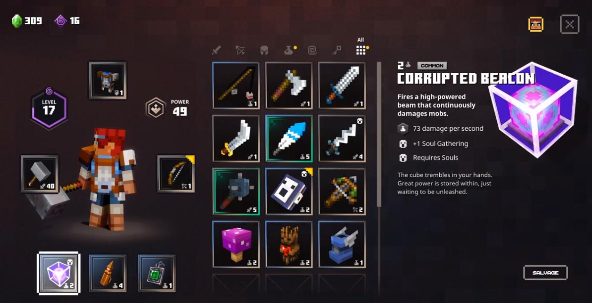 不過,這種情況並沒有在《我的世界:地下城》身上重演,原因其實不難理解。作為一款裝備驅動型的地牢探險遊戲,玩家在《我的世界:地下城》可以不斷地追求更好的裝備以及更炫酷的裝備搭配。令人興奮的是,這個遊戲是沒有職業設定的,玩家擁有的技能取決於裝備,技能不再是與玩家角色捆綁,而是與裝備捆綁。這樣一來,玩家可以根據自己擁有的裝備來決定自己應該走什麼路線——輸出,坦克,抑或奶媽。職業的壁壘被打破,玩家們擁有了夢寐以求的權利——自由切換角色職業的權力。