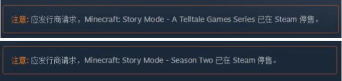 《我的世界:故事模式》及其第二季被發行商Telltale Games主動從Steam下架