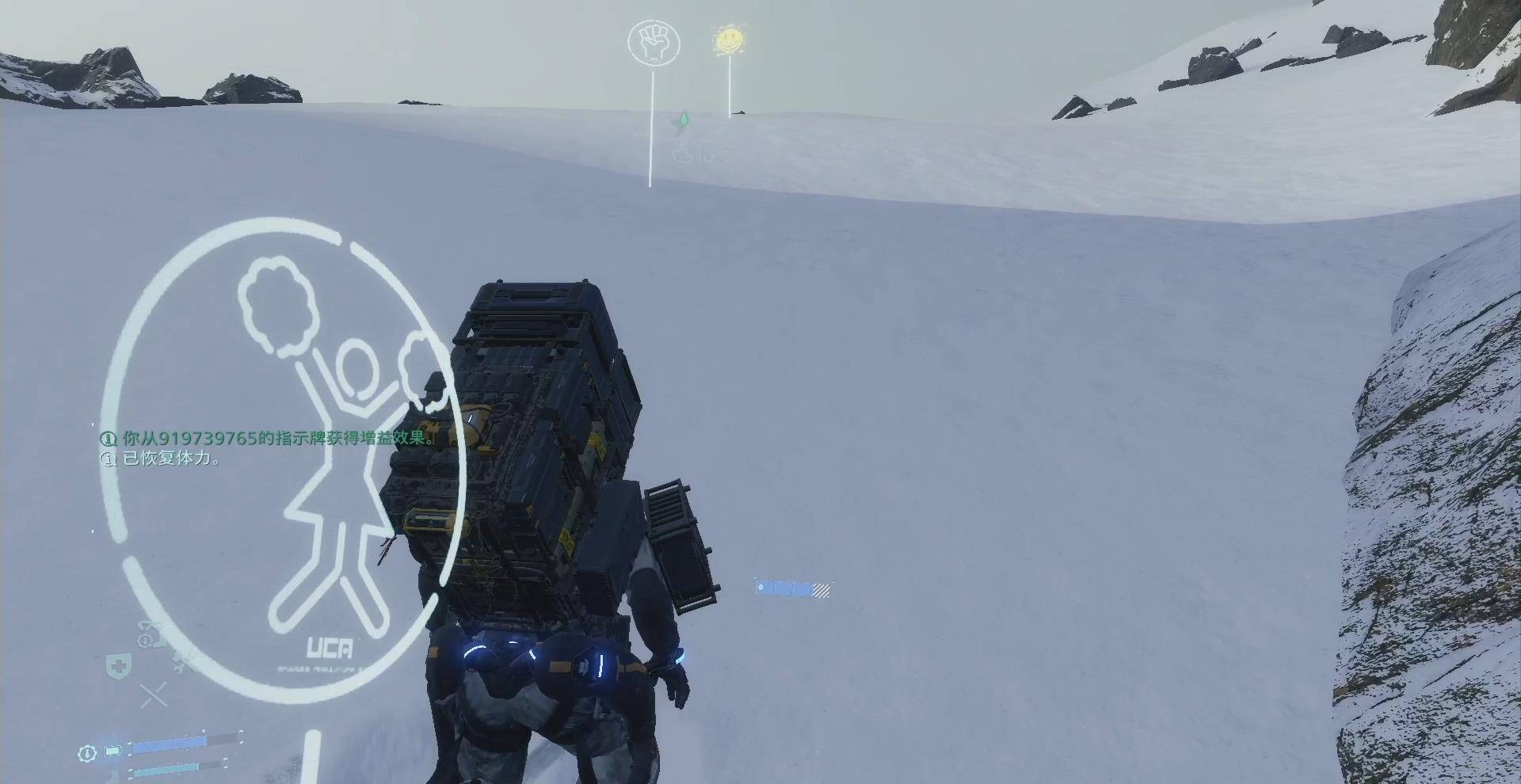 上述要素的存在,都在明示著,玩家並非隻身一人,還有著許多同我們一樣的人,在這個世界上努力前行著。為此,我也學起了那些留下警示標語與建築的玩家,留下了鼓勵的標識、架起了梯子、修起了橋樑、鋪起了道路,為了自己,更是為了他人。這是此前未曾想到過的場面,在隔天打開遊戲時,系統居然提示我收獲到了一萬六千多個贊。這讓我感到有些吃驚,但更多的則是欣喜。因為我的每一份努力,每一份付出,都有來自全球各地玩家的認同。這也讓我更加堅定,在《死亡擱淺》的世界裡。我不是一個人在戰鬥,在我的身邊,在我看不到的地方,依舊有著無數的「山姆」,為了拯救這片美麗的世界,而努力前行著。