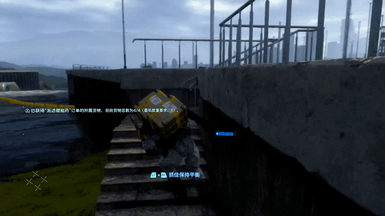但與觀眾的視角不同,彼時坐在電腦前的我,卻是完全沉浸在了遊戲的世界裡。遊戲運送貨物不單單是抵達指定地點即可,還需要玩家時刻注意道路和人物的狀態。因為背負的東西過重、道路崎嶇,遊戲角色很容易出現重心失調,如不及時做出調整,則會連人帶貨,一起摔了個人仰馬翻。假如運送的訂單貨物中,恰巧有些易碎品,可能就直接導致任務失敗。有時也會因為自己推動搖桿過快,人物轉向太過迅速;又或是在攀登某一段崎嶇的山路,體力槽消耗太快,從而導致人物出現類似的情況,都需要玩家按下手柄肩鍵(LT和RT兩鍵)做出調整,由不得分心絲毫。