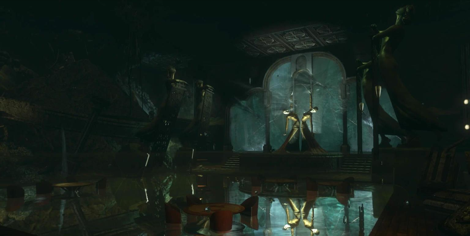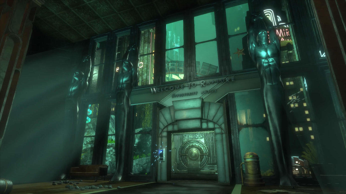 生化奇兵系列其實每一部都很精彩,一代是最經典的一部,剛開始極樂城映入眼簾時,那種震撼感久久不能忘懷,而很快我們卻又感受到極樂城的恐怖,人人處於癲狂狀態,遊戲的恐怖氛圍做得很好,而且遊戲是第一人稱,很容易就能進入狀態,感受那種恐怖與緊張刺激的感覺。一代的整體畫面比較昏暗,這與他的恐怖氛圍聯系很大,更昏暗的光線,營造出了恰到好處的恐怖氛圍,另一個原因則是極樂城本身就是處於海底,即使有光照,也不會像三代的天空之城那樣光明。
