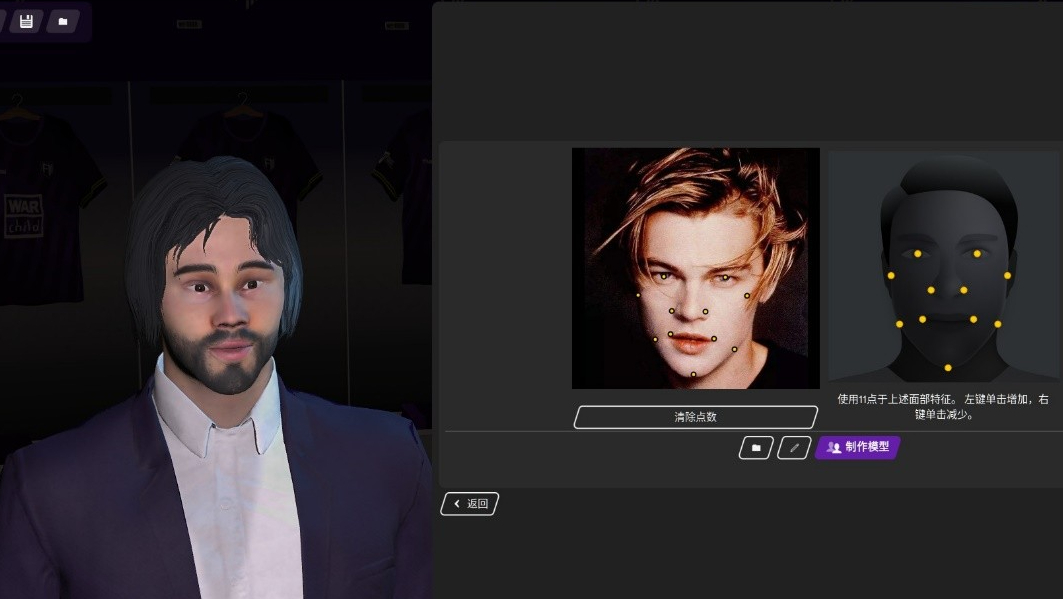 在捏人中有一項功能是值得大書特書的——玩家可以按照自己的喜好上傳照片到游戲內從而生成面部3D模型。我嘗試過用動漫人物的正面照來進行建模,雖然按照系統要求標記好11個點來定位面部特徵,可最後還是以失敗告終。