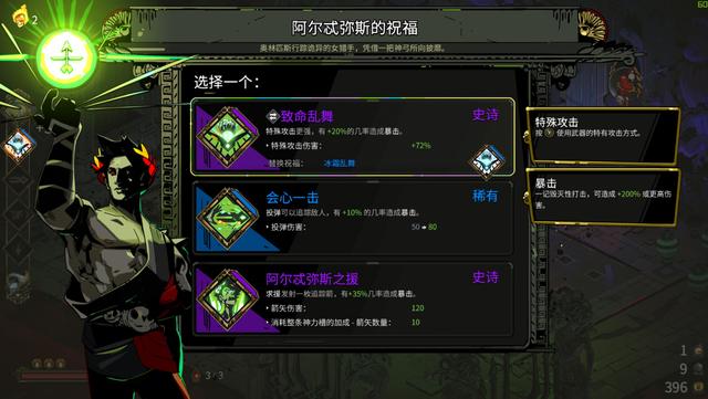 與很多地牢遊戲相同,《黑帝斯》也是可以自主選擇房間進入的,玩家可以根據自己的情況選擇下一個房間的獎勵內容:金幣、生命值、商店、神力支援等,而在選擇房間的條件下,其中帶來的收益也是隨機的:也就是你每次遇到的親戚都是不同噠哈哈哈哈,也就帶來了你攜帶不同武器然後用不同武器附不同的魔會有不同的效果。