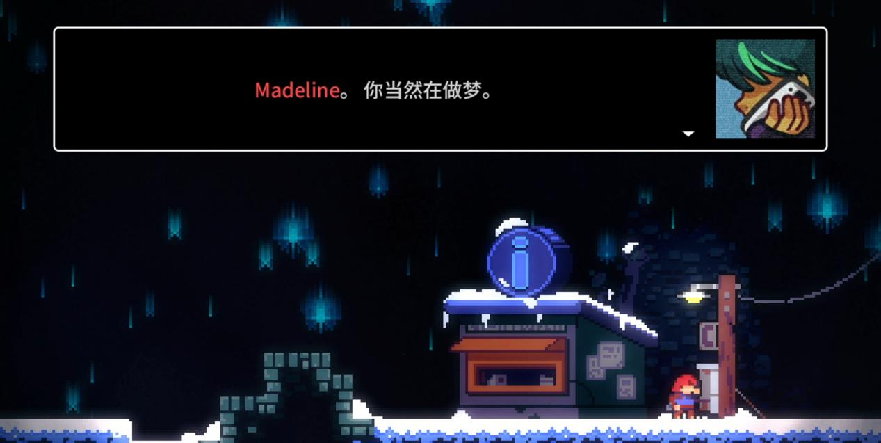 當玩家經過無數失敗最終通過此章後,bgm逐漸消失,玩家心情歸於平靜。正當家玩家還在回味剛才的余韻時,Madeline給已經分手的男朋友打了個電話,得到了一個詭異的答覆。(如下圖)