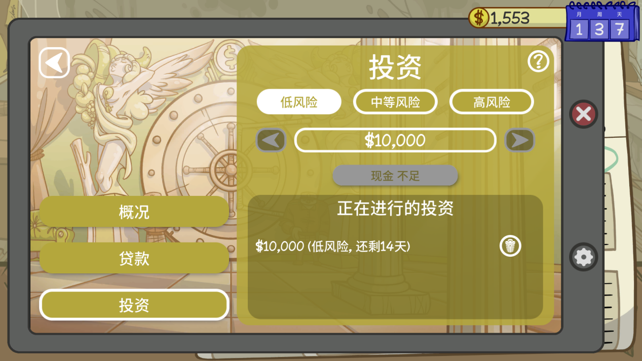 《當鋪人生2》同時加入了銀行貸款和投資,以及拍賣行的玩法。你可以通過銀行的貸款來度過當鋪銷售的淡季,也能夠通過投資來賺一筆外快,高風險高回報!